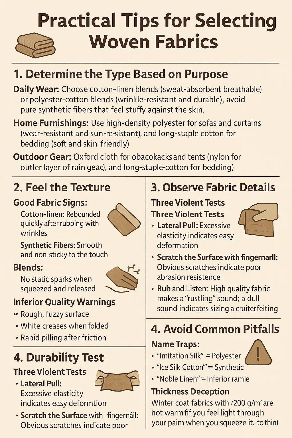 Washing Prediction: Wet a corner and rub it—don't buy if it fades significantly; fabric that hardens after drying will become rougher with each wash.