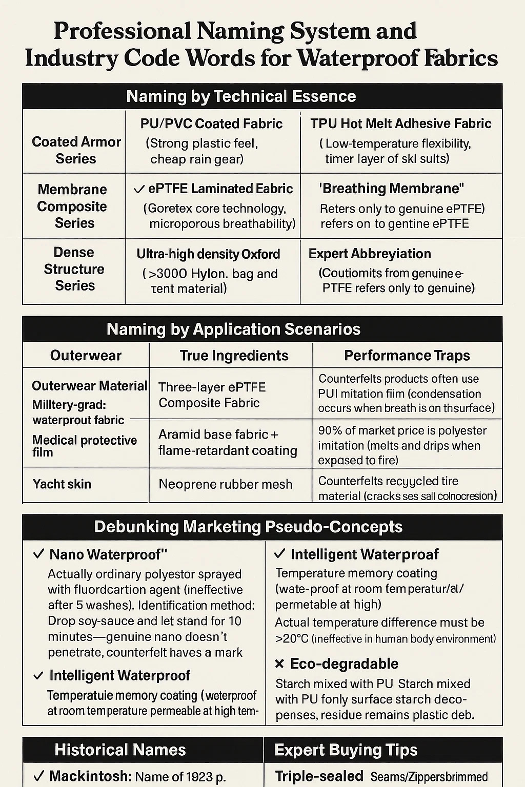 Professional Naming System and Industry Code Words for Waterproof Fabrics